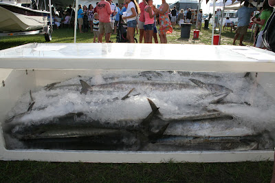 And the general tournament winners, Capt. Dennis Lagnador and the crew of the Easy-Duz-It, couldn't stop smiling from the time they laid their winning king on the scales Saturday to collecting the first place prize of a 177 Scout, provided by Beach Marine, powered by a 75hp Mercury on a Float On Trailer.... I'd be smiling too!